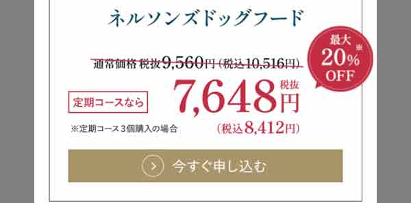 先ほど解説したように、ネルソンズドッグフードは公式サイトなら最もお得な価格で買うことができます。通常価格と定期コースは価格が違いますので、各々の詳細を確認しましょう。